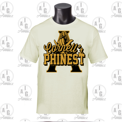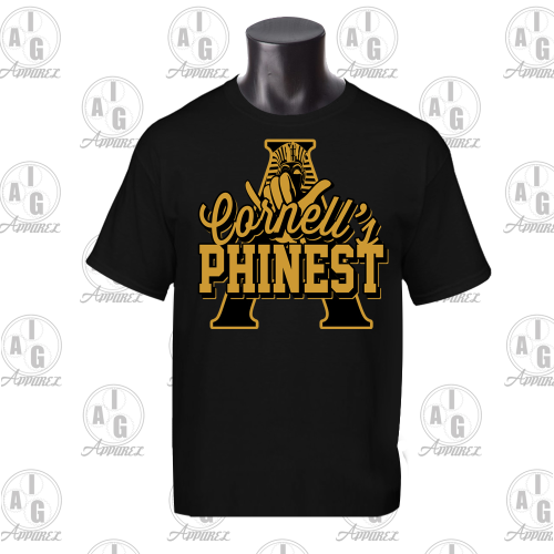 The Cornell's Phinest Tee. This sturdy cotton tee is a tribute to the best thing to come out of Cornell... This is a black tee with black blacking and Old Gold print. This tee is a hefty 6 ounces and 100% cotton bearing our classic world renowned IAG fit.
