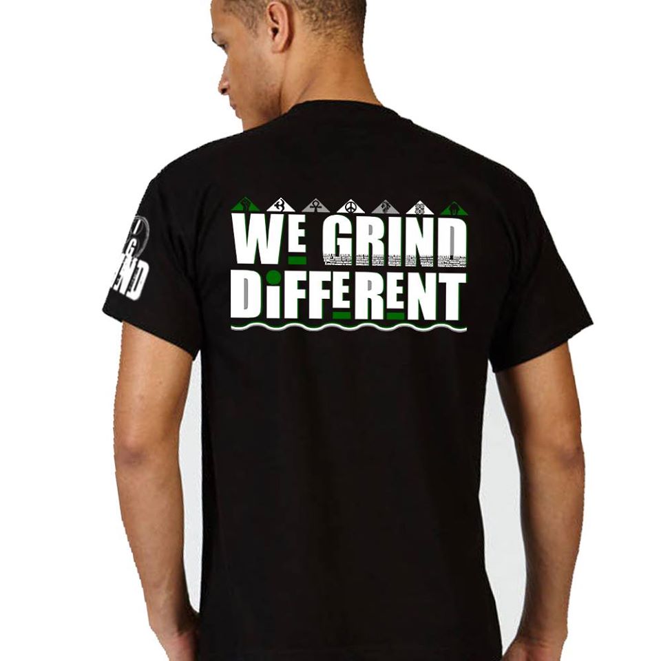 We are Second To NONE because WE GRIND DIFFERENT - Black Tee - White, Green, Grey Text.